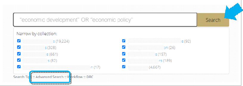 Figure 2. Advanced search function of TIND IR, accessed by clicking the link indicated in Figure 1 (Source: Ford Foundation’s institutional repository)