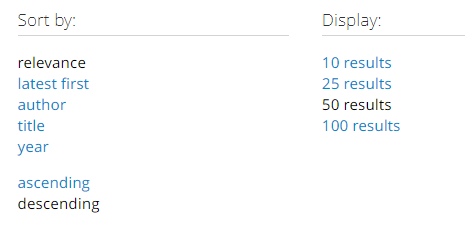 TIND allows users to sort by various values, like relevance, latest first, author, title, and year (Figure 4).