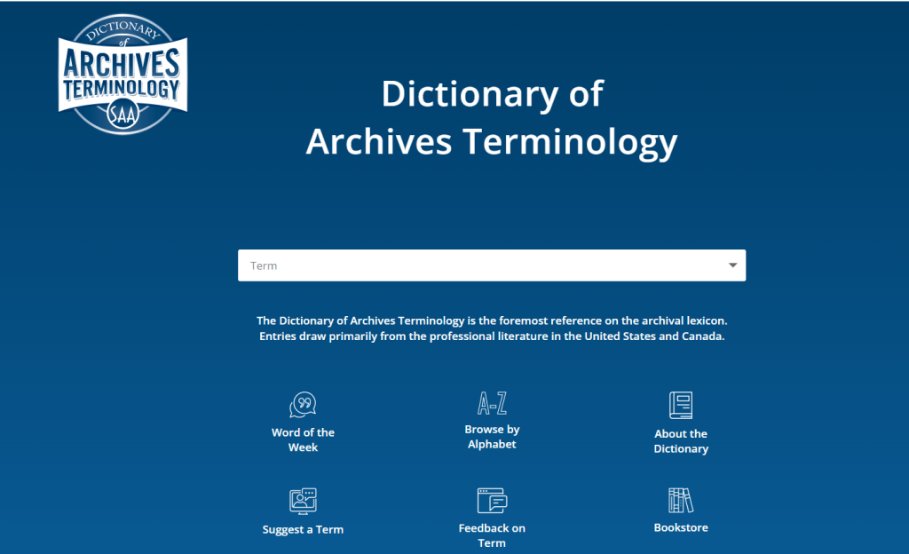In the ever-changing world of archives terminology, the Society of American Archivists’ (SAA) Dictionary of Archives Terminology (DAT) provides a resource to assist scholars, researchers, and archivists with understanding key concepts and terms that underpin archival work. As “North America’s oldest and largest national professional association dedicated to the needs and interests of archives and archivists,”[1] SAA is a credible organization to be producing a dictionary of archives terminology.